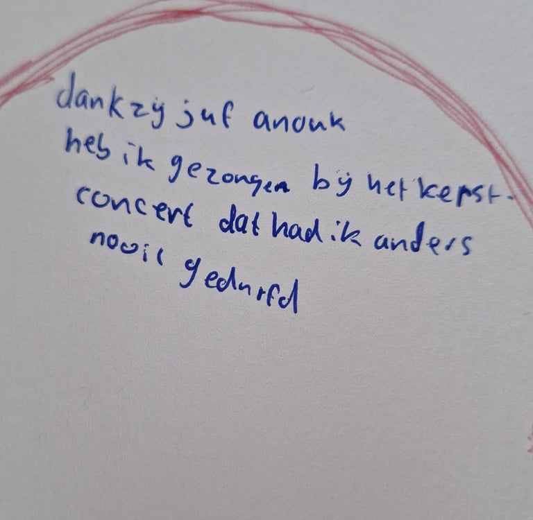 Ik verliet de zangles altijd met een goed gevoel en meer ervaring en kennis! Naast dat ik veel heb geleerd bouwde ik ook een goede band op met Anouk en daardoor had ik altijd zin in een nieuwe les!😊