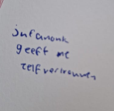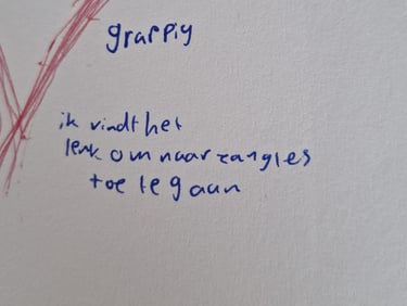 De keren dat ik bij dei bin weest voor zangles, hef ik leerd van dei om rustig te bliiven tijdens t zingen, ik bin deur zangles de buikademsteun en de houding tijdens t zingen van mijzelf meer in de gaten aan t houwen