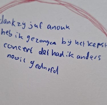 Ik verliet de zangles altijd met een goed gevoel en meer ervaring en kennis! Naast dat ik veel heb geleerd bouwde ik ook een goede band op met Anouk en daardoor had ik altijd zin in een nieuwe les!😊